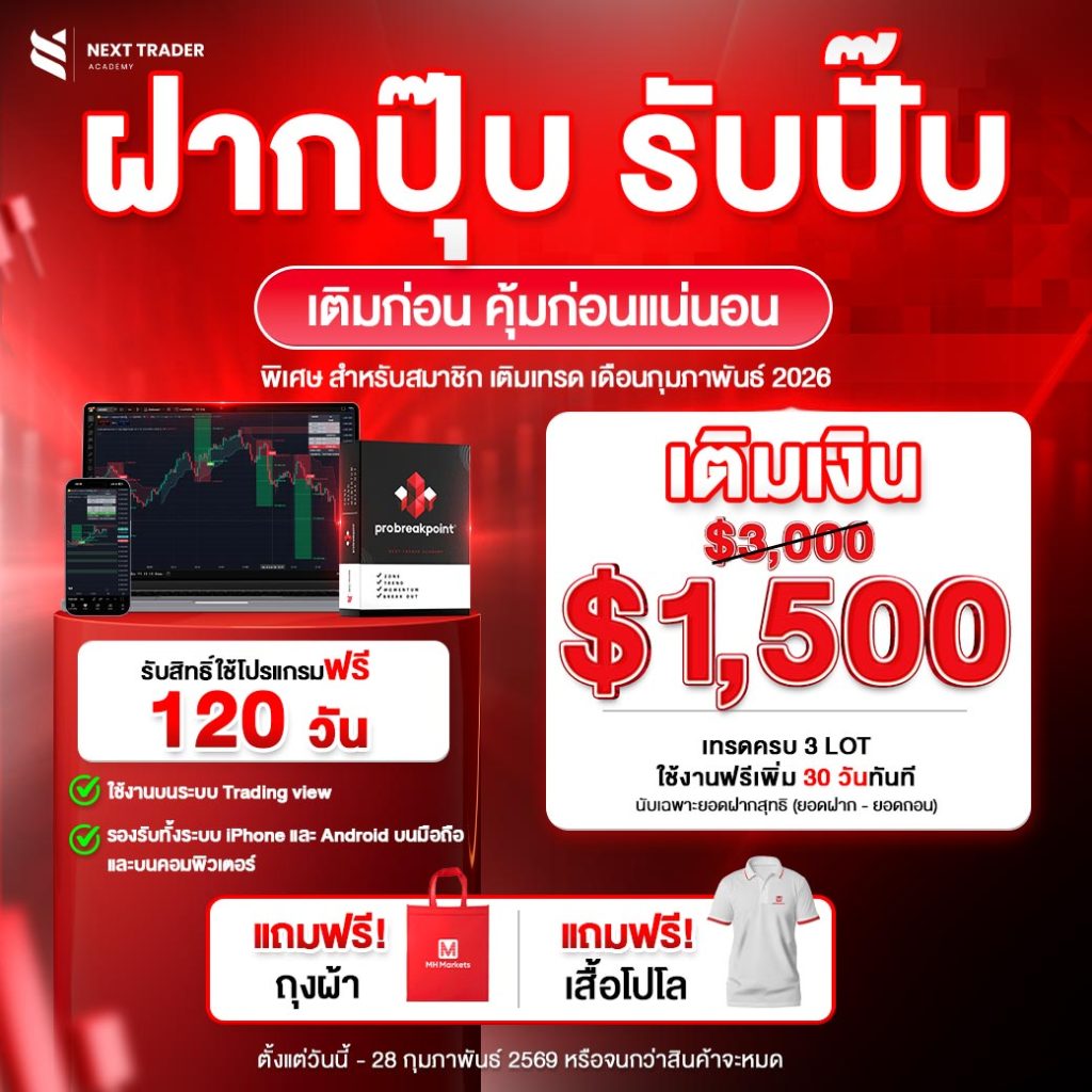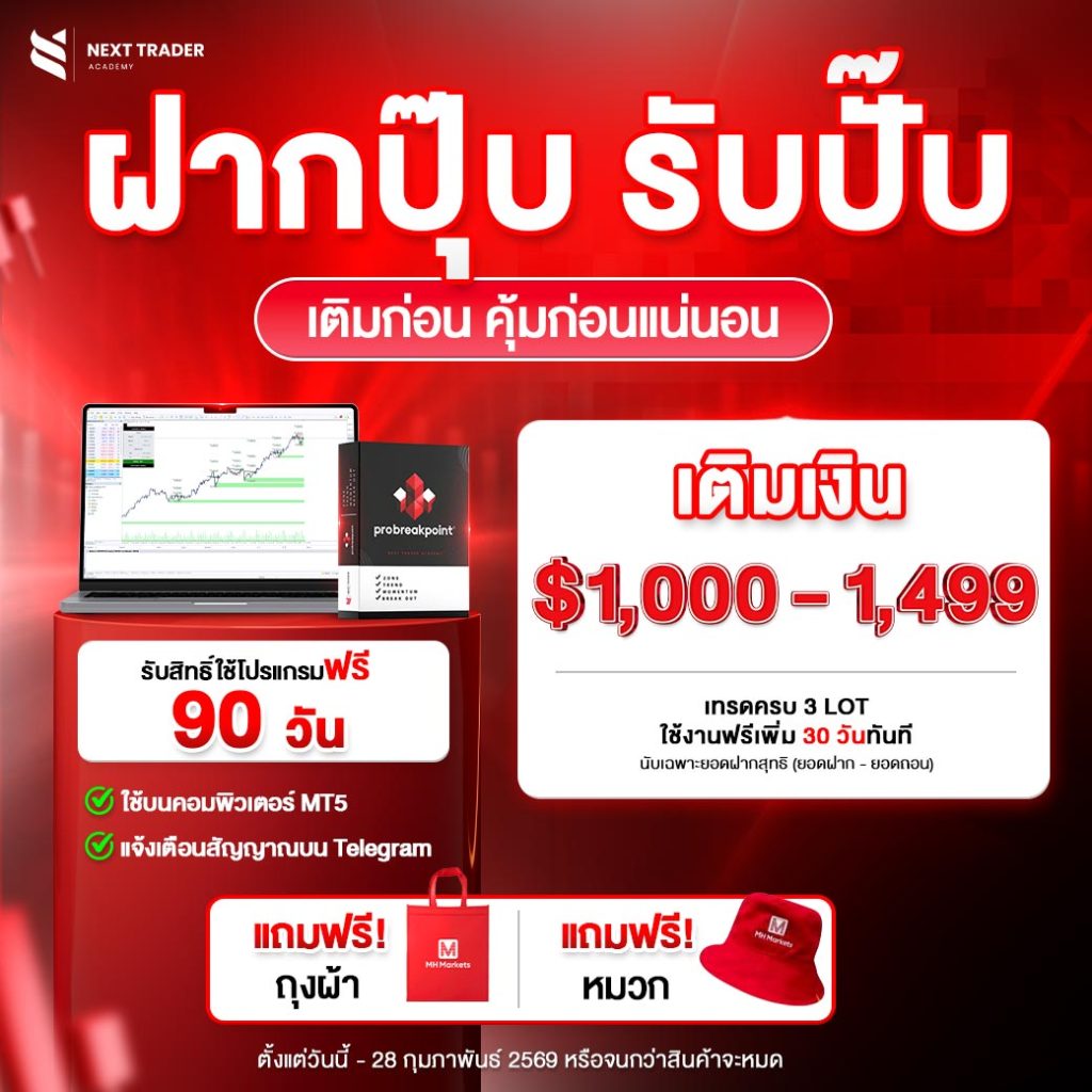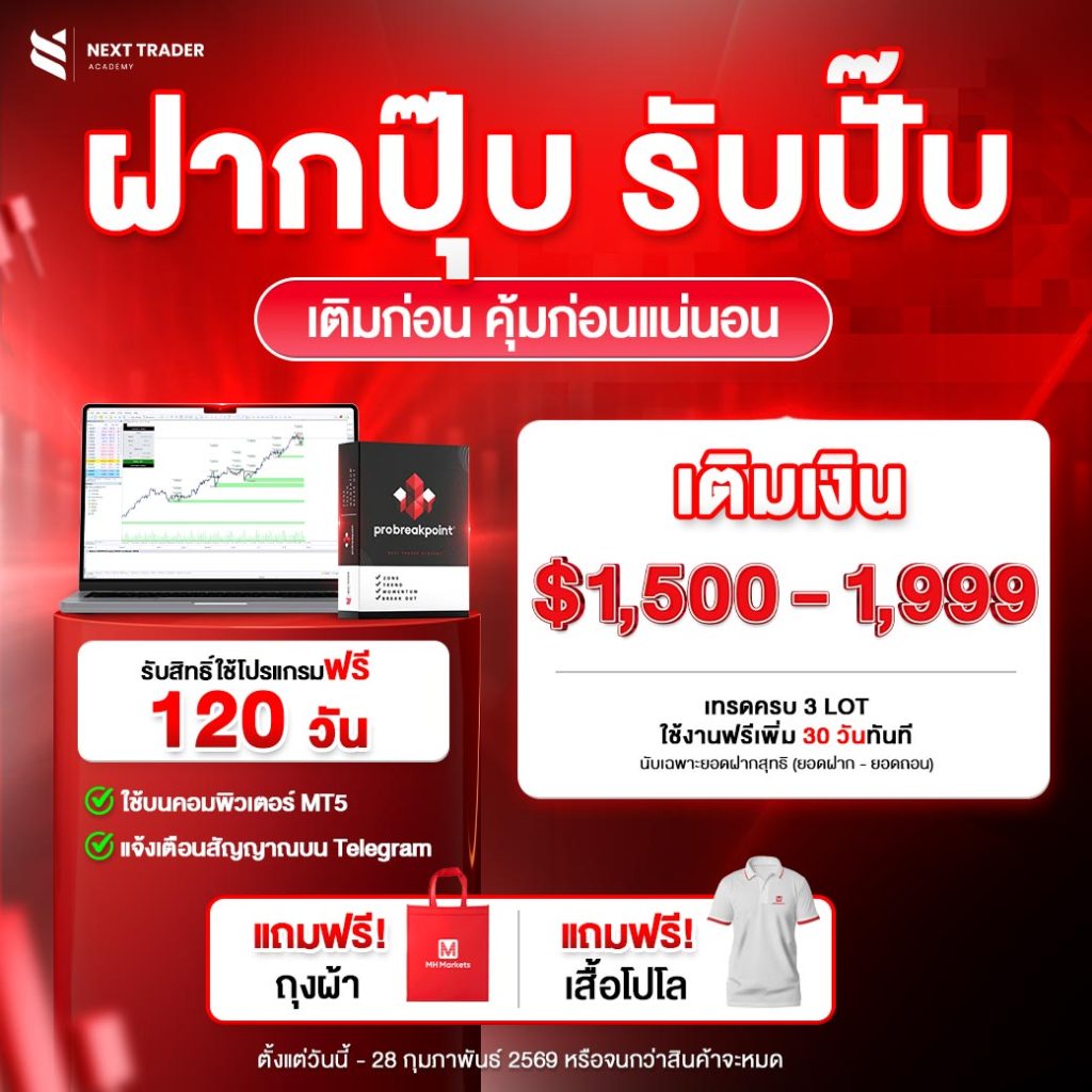 สุดคุ้ม! ฝากเงิน 1,500 – 1,999 USD และเทรดครบ 3 Lot รับสิทธิ์ใช้งานโปรแกรมฟรี 120 วันเต็ม
