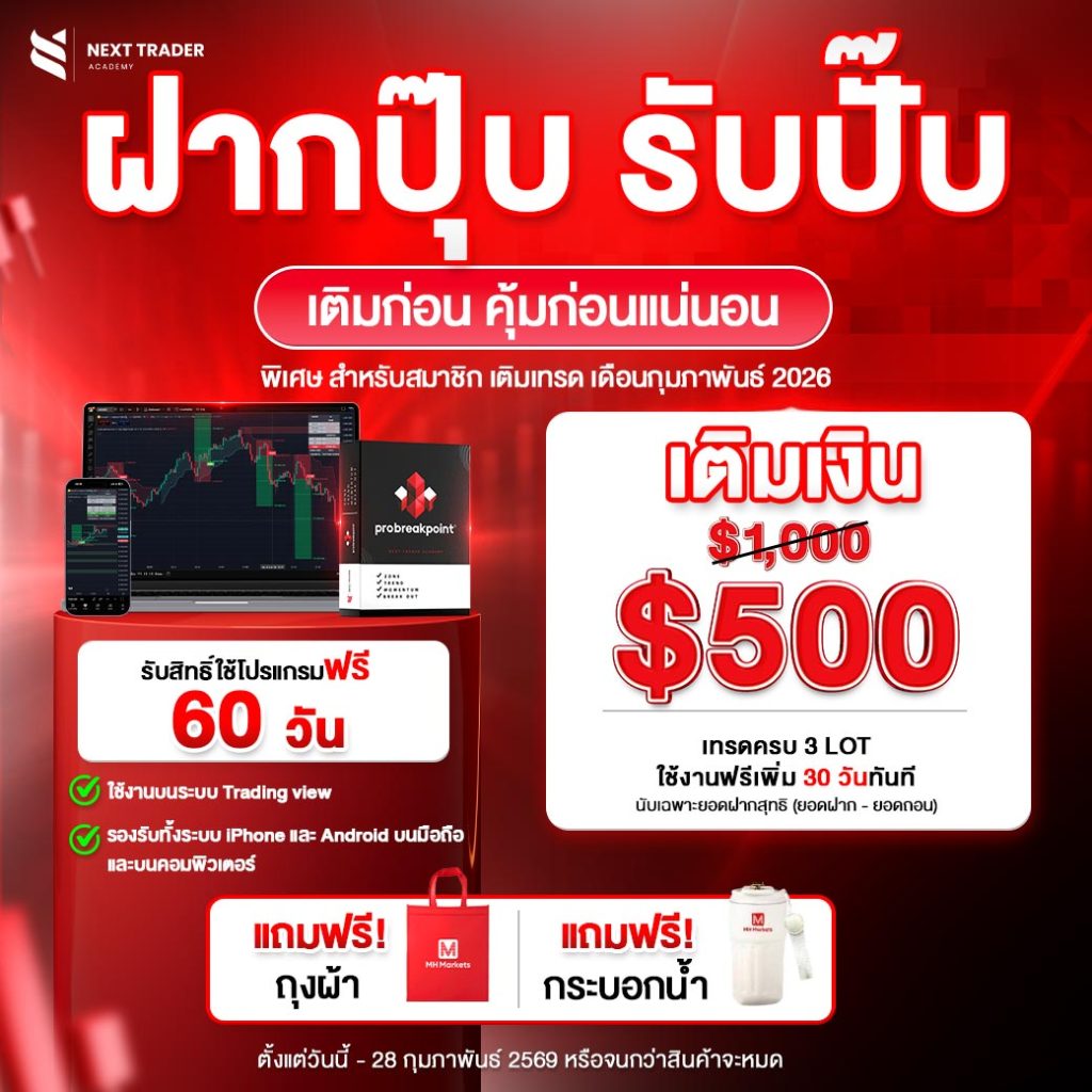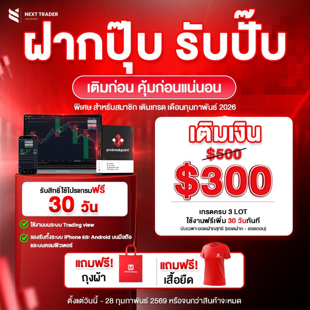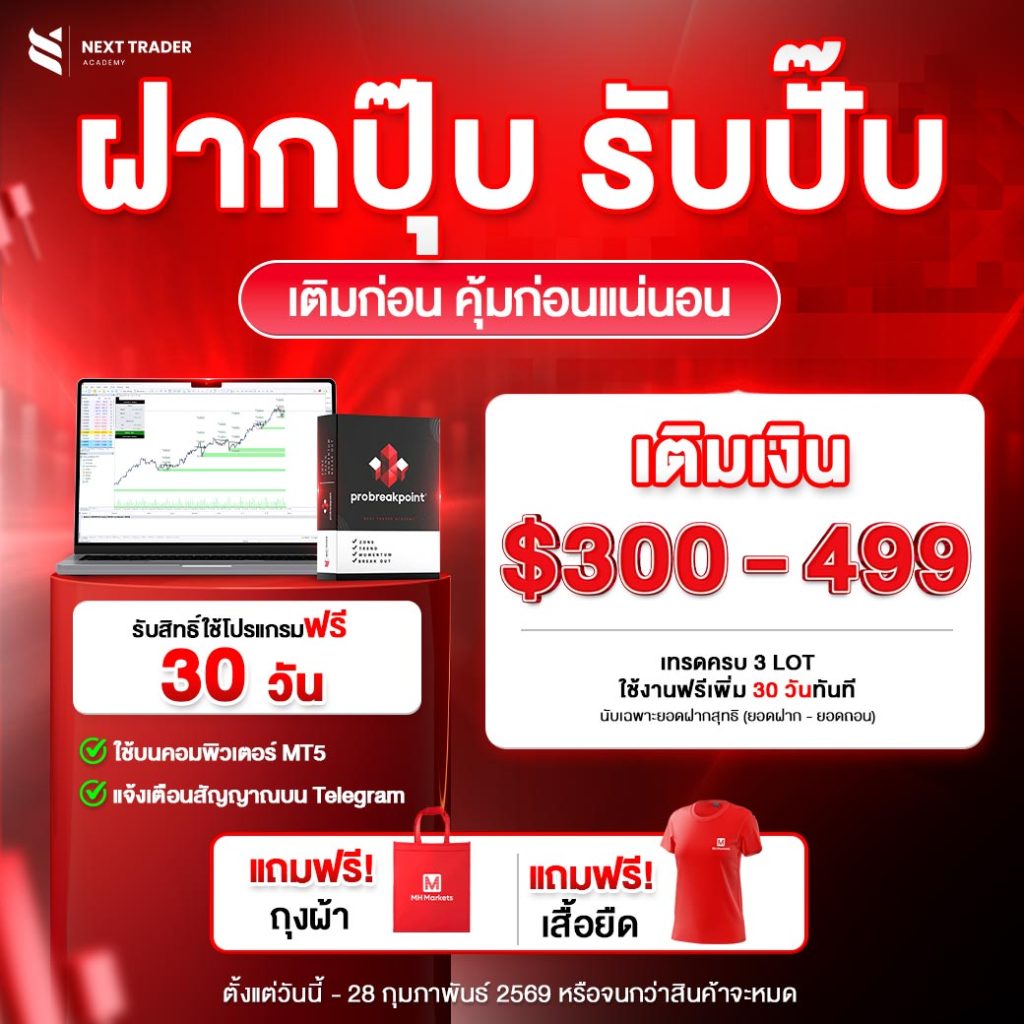 พิเศษสุด! ฝากเงิน 300 – 499 USD และทำการเทรดครบ 3 Lot รับสิทธิ์ใช้งานโปรแกรมฟรี 30 วันเต็ม พร้อมของแถมสุดคุ้ม