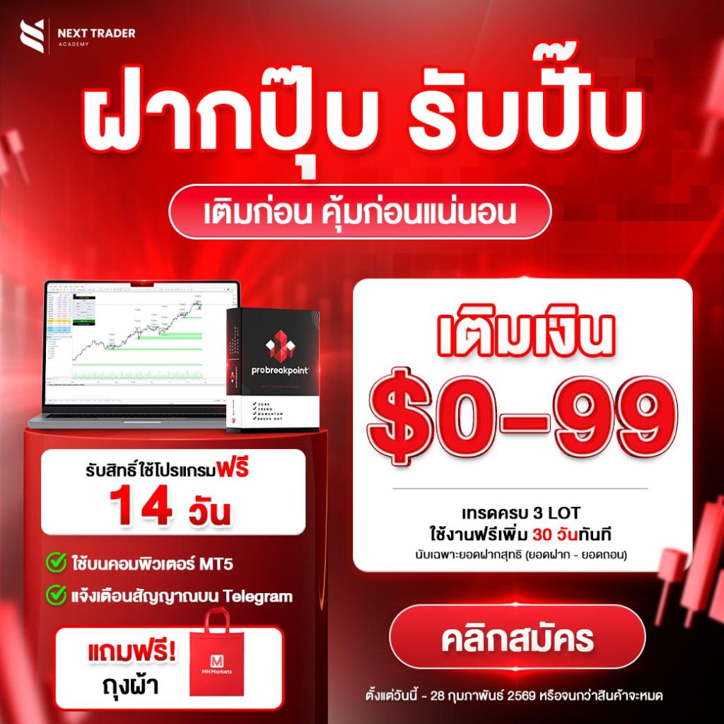 เพียงฝากเงิน 0 – 99 USD และทำการเทรดครบ 3 Lot คุณจะได้รับสิทธิ์ใช้งานโปรแกรมเทรดฟรี 14 วัน พร้อมของแถมสุดพิเศษ