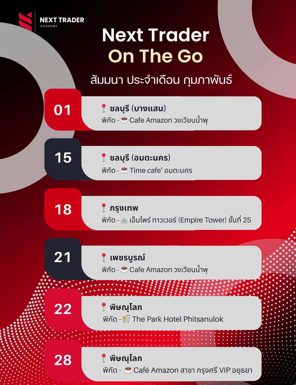 📢 สัมมนาสอนเทรดฟรี! จังหวัด ชลบุรี เรียนรู้เทคนิคการเทรดจากศูนย์สู่มืออาชีพ กับทีมเทรดเดอร์มากประสบการณ์